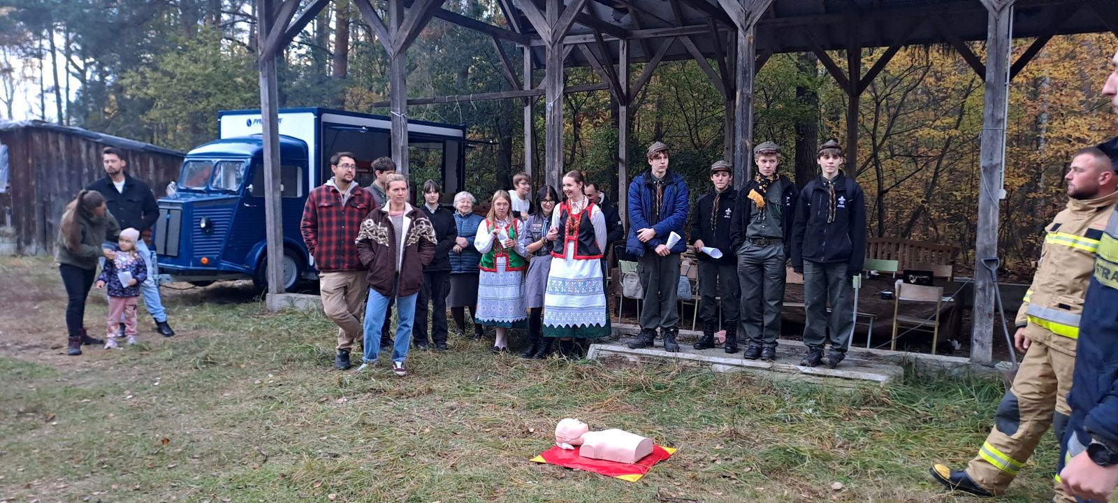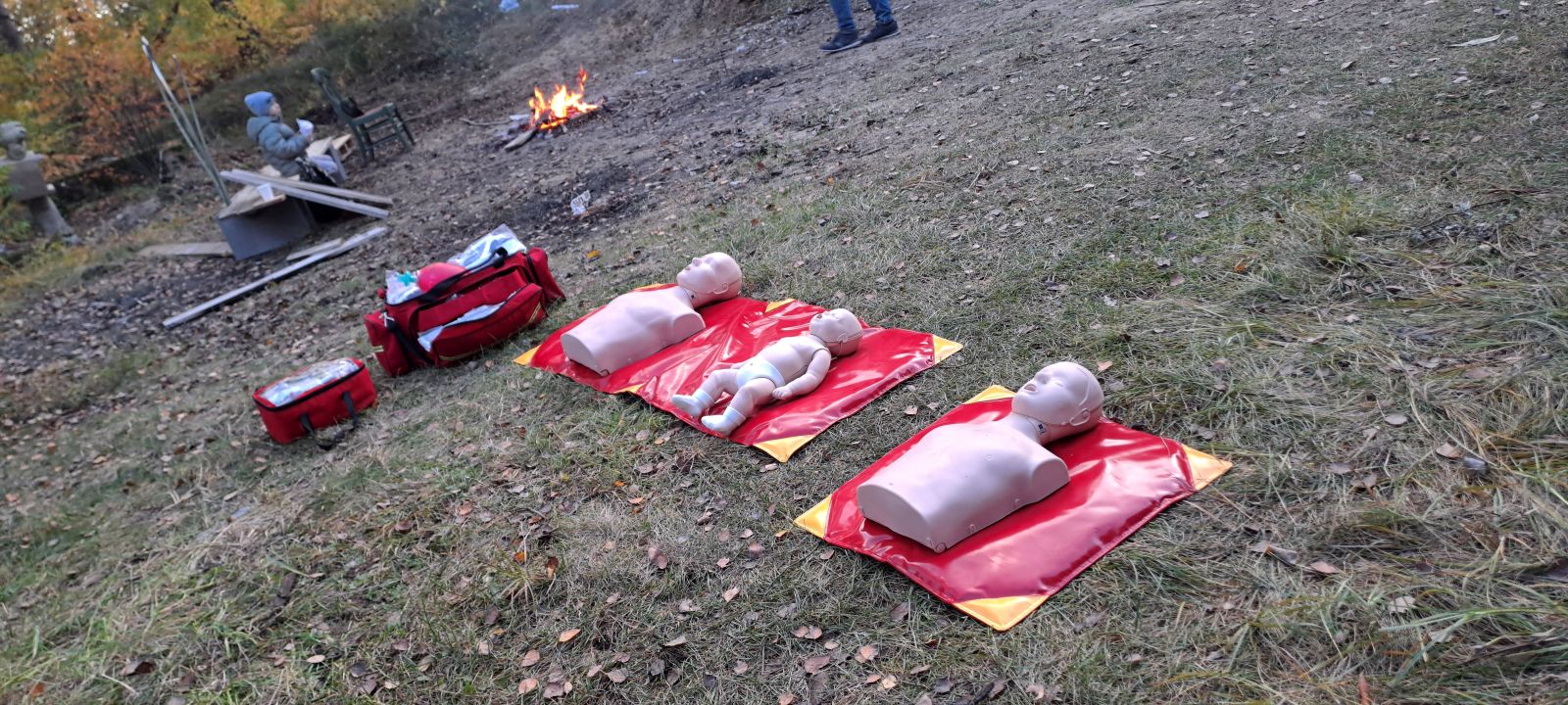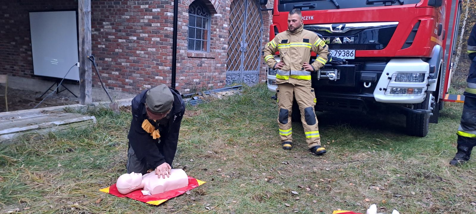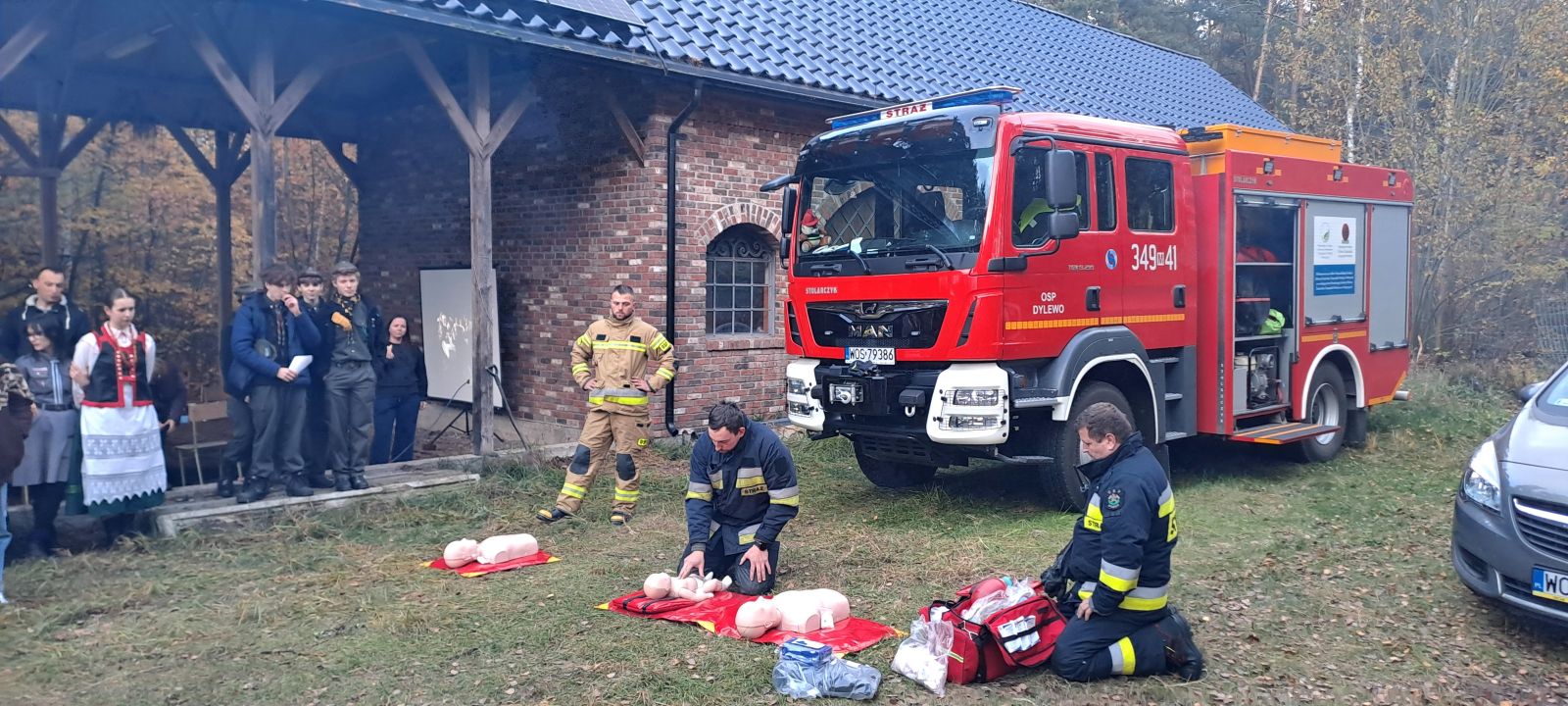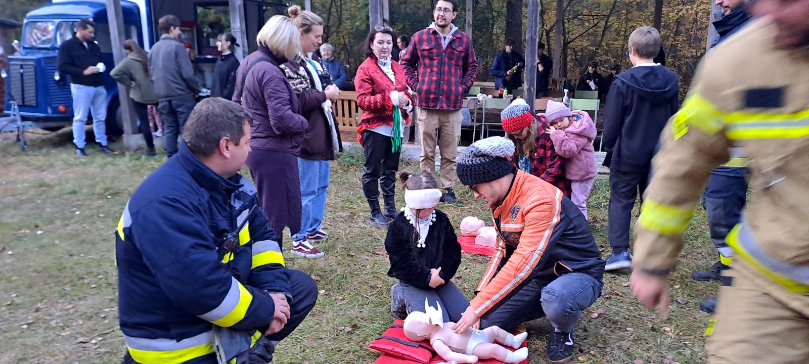 Na uczniów czekało wiele atrakcji, m.in.: pokaz działań straży pożarnej i policji, praktyczne ćwiczenia z udzielania pierwszej pomocy, ognisko z pieczonymi kiełbaskami, dmuchańce do skakania i maskotki SKO - Żyrafka Lokatka oraz Pancernik Hatetepes.