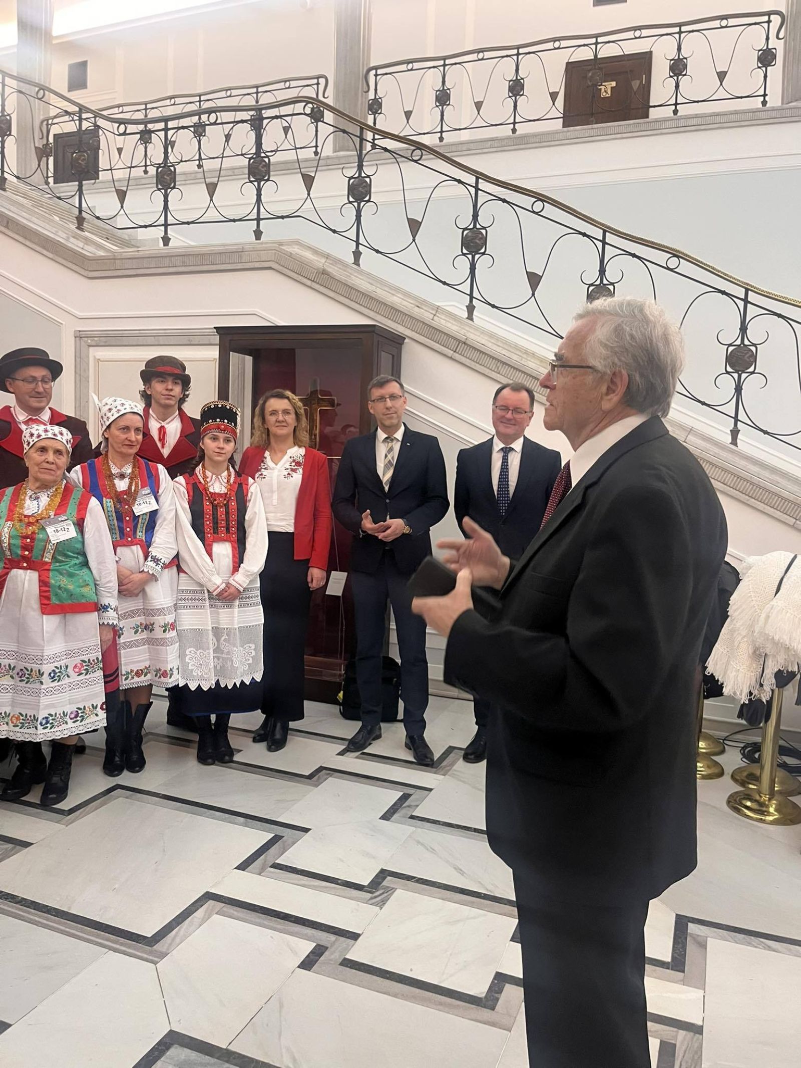 Podczas tego wydarzenia w Sejmie nie mogło zabraknąć reprezentacji Kurpi. A wśród nich gminy Kadzidło, którą reprezentowała wójt Anna Śniadach i Paweł Łaszczych, dyrektor Centrum Kultury Kurpiowskiej. Obecna była także rodzina wybitnego etnografa.