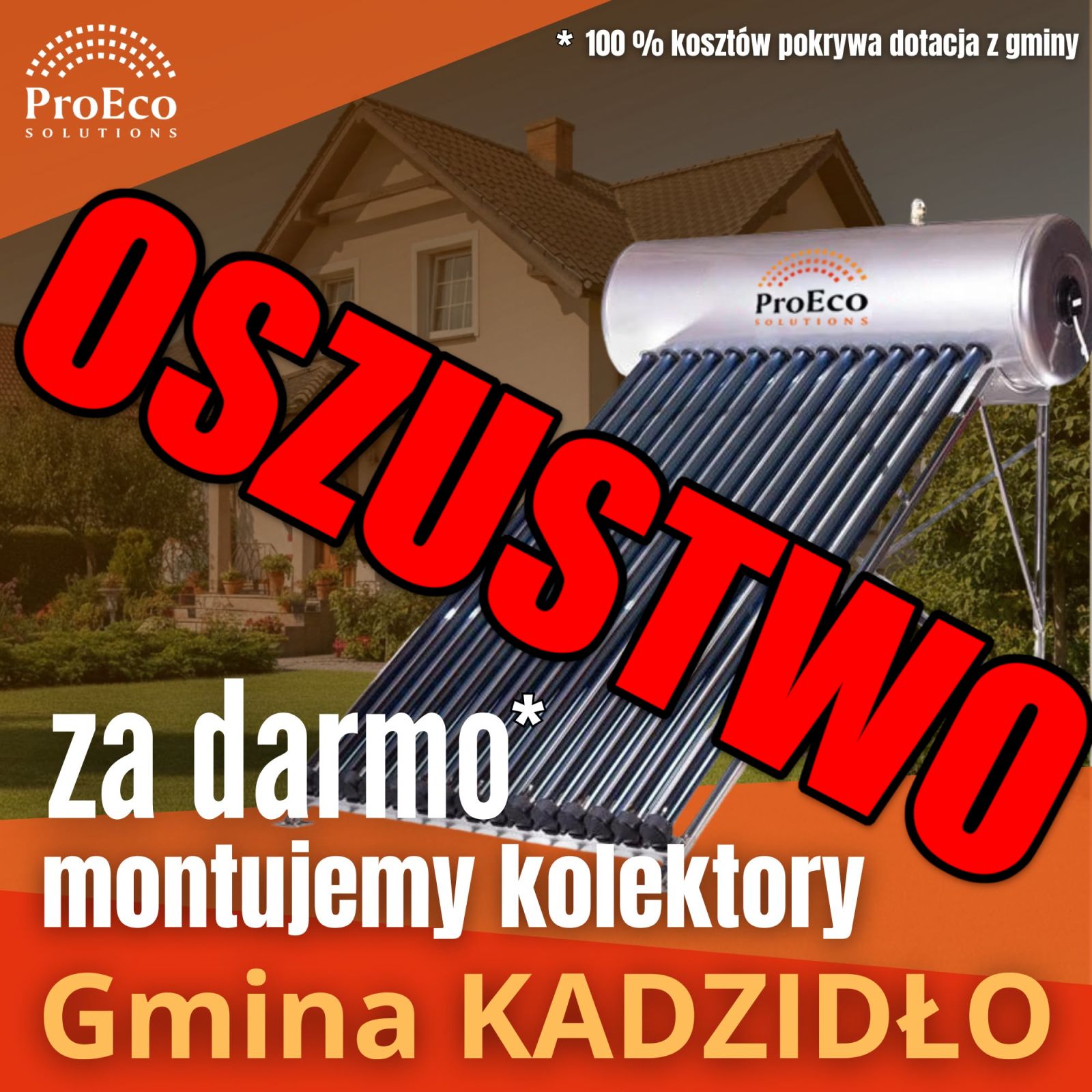 Drodzy mieszkańcy, informujemy że Gmina Kadzidło nie ma nic wspólnego z firmą "Pro Eco Solutions Ltd.", i z żadną inną firmą, która zajmuje się tego typu działalnością. Jest to forma oszustwa, Gmina nie bierze odpowiedzialności za wszelkiego rodzaju straty finansowe. Wszelkie informacje o dotacjach i dofinansowaniach umieszczamy na stronach: